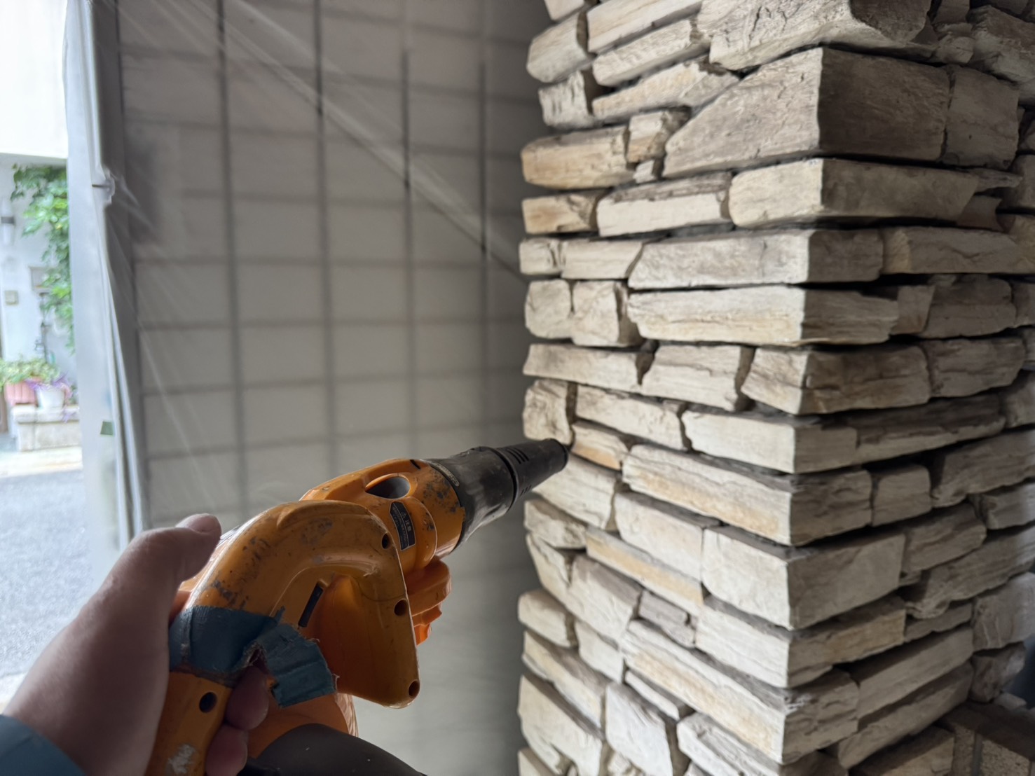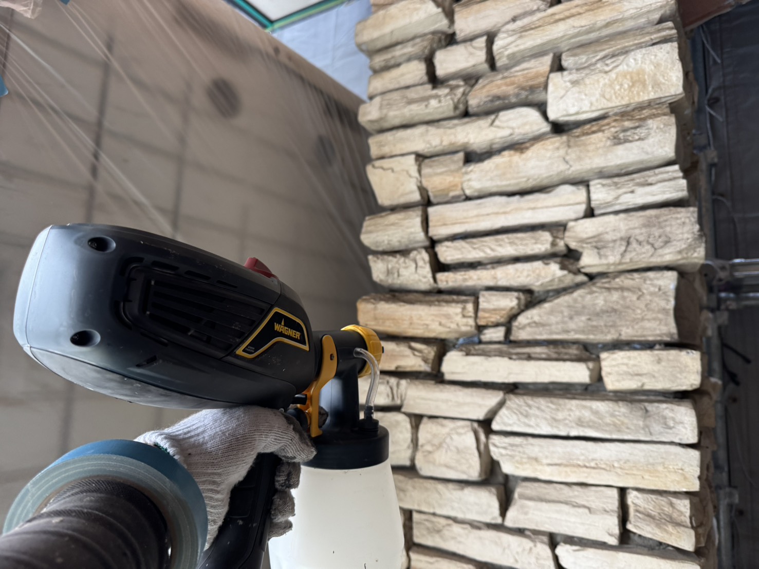 こうした立体感のある壁面は、意匠性が高い一方で、筆やローラーだけでは奥まで塗料が届きにくいという難点があります。