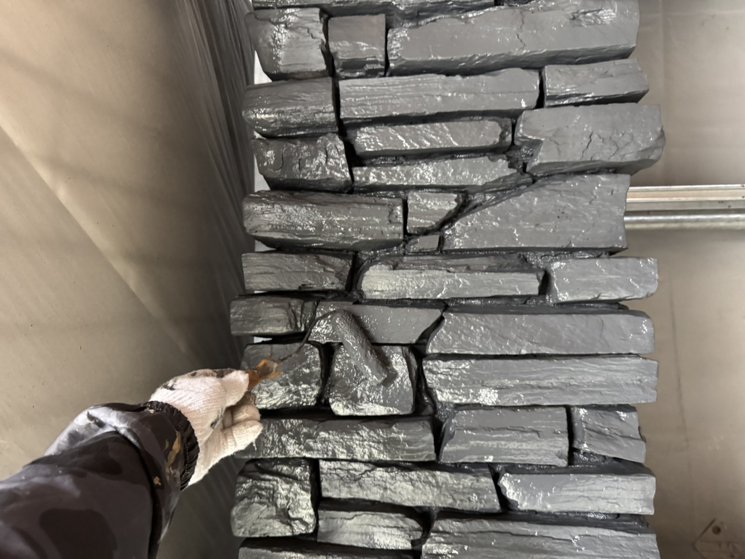 複雑な凹凸の隙間まで塗料が行き渡るよう、吹き付け塗装を施します。